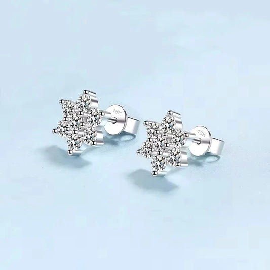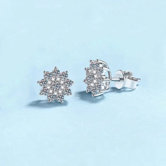 Birthday Gift 18K White Gold Earplug Stud Earrings Women Engagement Moissanite Diamond 1.4CT Snowflake Girl Wedding Fine Jewelry