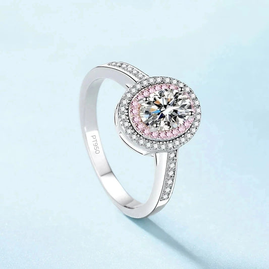 Classic Engagement Women PT950 Platinum Wedding Oval Rings 1CT Moissanite Diamond Girlfriend Birthday Gift Daughter Fine Jewelry