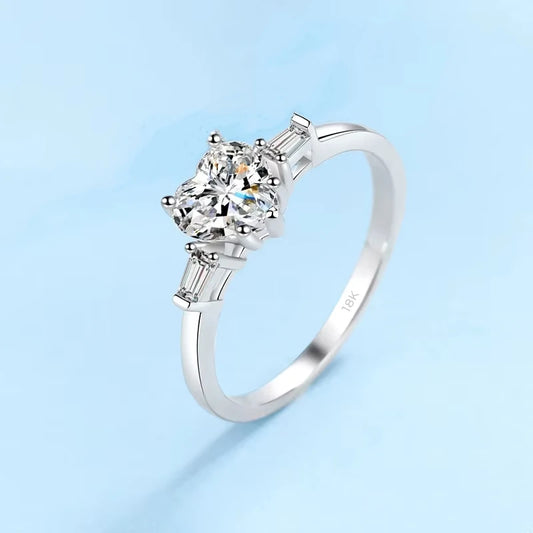 Daughter Adult's Day White Gold 18K Heart Rings Women Engagement Moissanite Diamond 0.3CT Girl Birthday Gift Lady Wedding Band