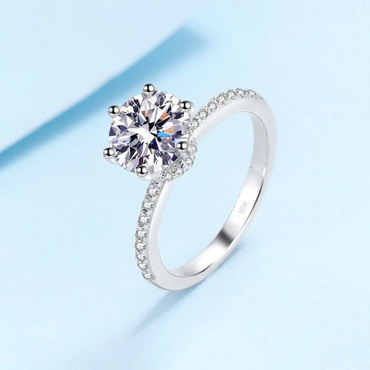 Designer Jewelry 18K White Gold 2 Carat VVS1 D Color Moissanite Diamond Six-pronged Setting Rings Wedding Accessories for Women