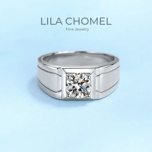 Engagement Rings 18K White Gold Men Wedding Band 1CT Moissanite Diamond PT950 Platinum Birthday Gift Boy Friend Valentine's Day