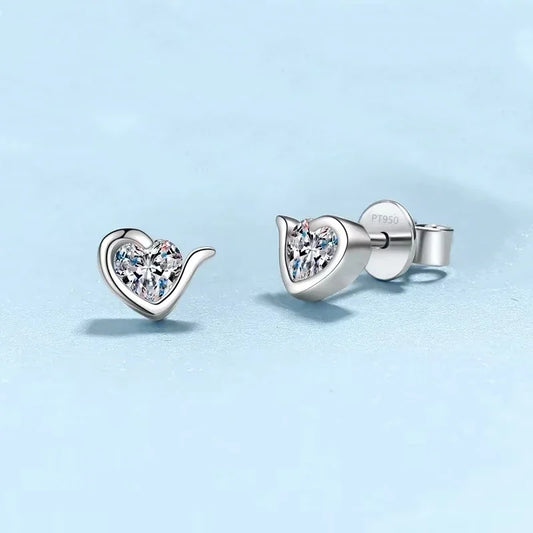 Daughter Adult's Day PT950 Platinum Heart Earplu Stud Earrings Women Valentine's Day 0.6CT Moissanite Diamond Girl Birthday Gift