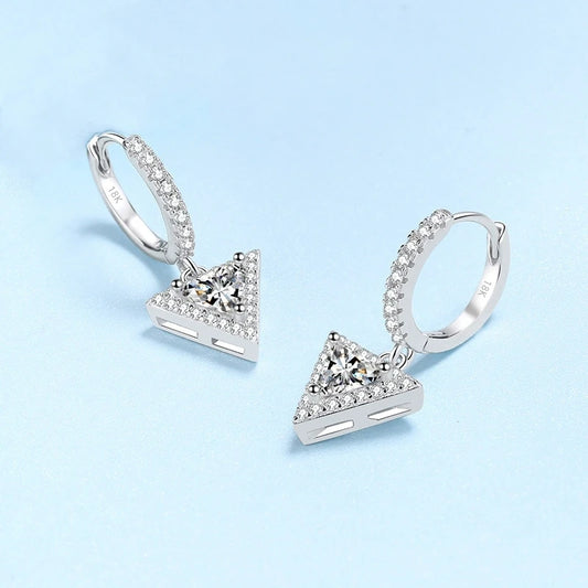 Girl 18K White Gold Triangular Drop Earrings Moissanite Diamond 1/2CT Lady Birthday Gift Women PT950 Platinum Valentine's Day