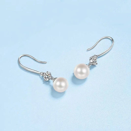 Trendy Women Valentine's Day Platinum PT950 Drop Earrings 0.6CT Moissanite Diamond Fresh Water Flawless Pearl Girl Birthday Gift