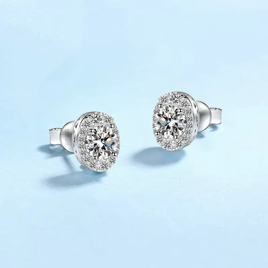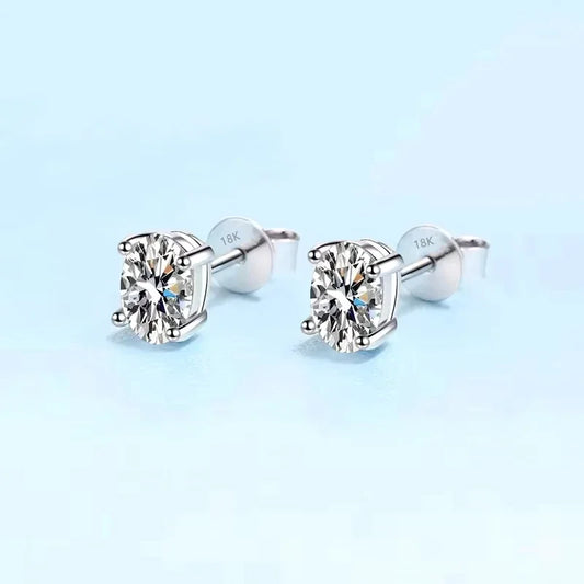 Daughter White Gold 18K Earplug Stud Earrings 1CT Oval Moissanite Diamond Girlfriend Birthday Gift WOMEN Wedding Fine Jewelry