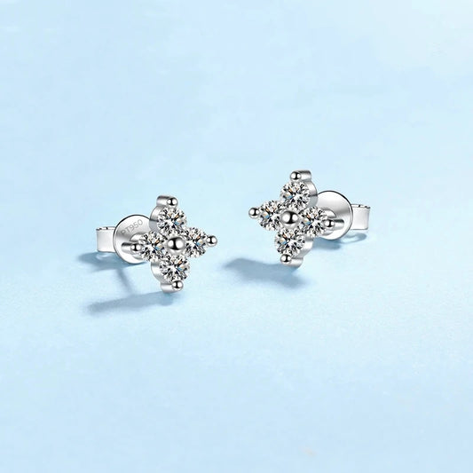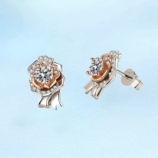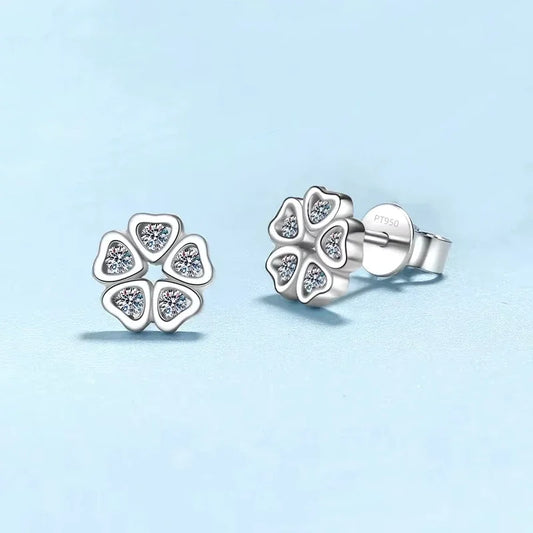 Daughter Adult's Day Platinum PT950 Women Wedding Flower Earplug Stud Earrings 0.25CT Moissanite Diamond Girl Birthday Gift INS