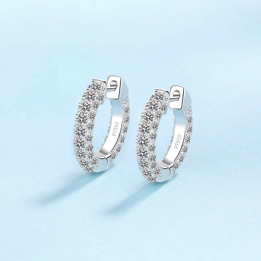 Valentine's Day Women PT950 Platinum Wedding Fine Jewelry Lady Hoop Earrings 1.92CT Moissanite Diamond Girlfriend Birthday Gift