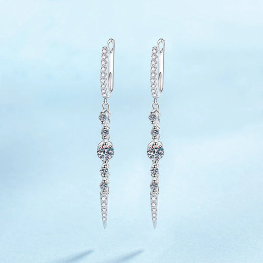 Office Lady Valentine's Day 18K White Gold Tassel Long Drop Earrings Women Wedding 1.118CT Moissanite Diamond Girl Birthday Gift