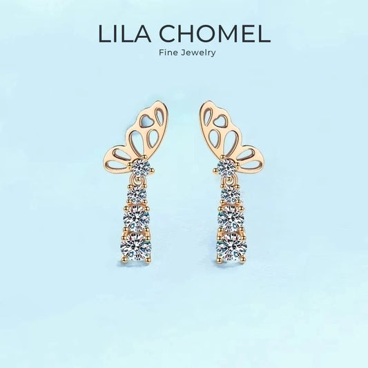Girl Friend Birthday Gift 18K Rose Gold Butterfly Stud Earrings 1.24CT Moissanite Diamond Valentine's Day Women Wedding Jewelry