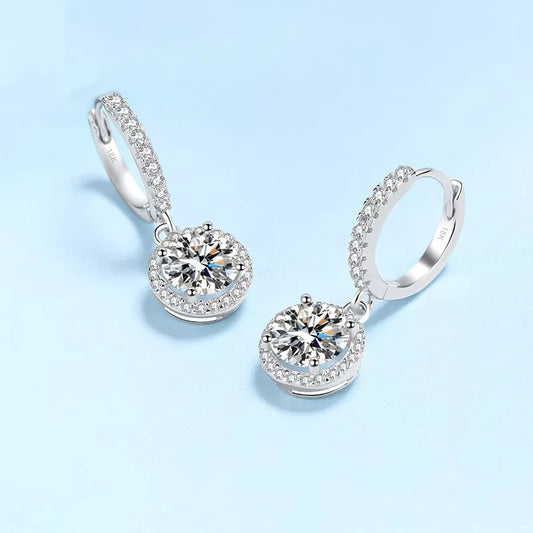 Girlfriend Valentine's Day 18K White Gold Women Wedding Drop Earrings 1CT Round Moissanite Diamond PT950 Platinum Birthday Gift
