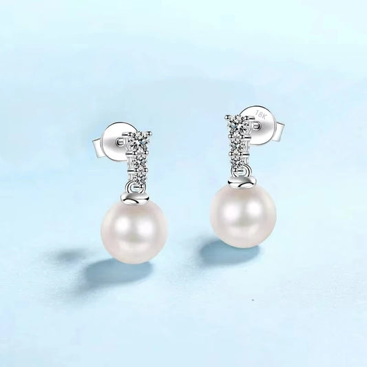 Earplug 18K White Gold Stud Earrings Girlfriend Birthday Gift Moissanite Diamond 0.23Carat Women Wedding Pearl Girl Fine Jewelry