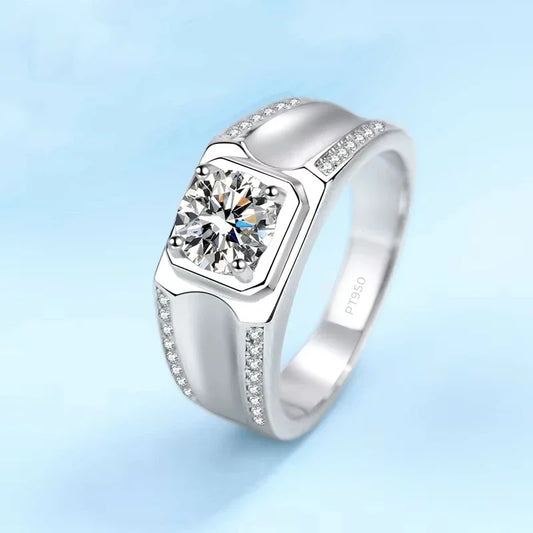 Wedding Platinum PT950 Men Rings VVS1 D Color 1CT Moissanite Diamond Boyfriend Birthday Gift Male Valentine's Day Fine Jewelry
