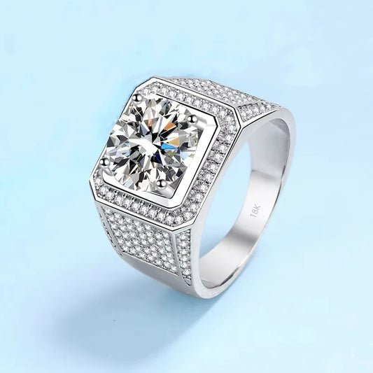 Engagement Men's 18K White Gold Wedding Band 5Carat Moissanite Diamond Men Rings Boyfriend Birthday Gift Husband Valentine's Day