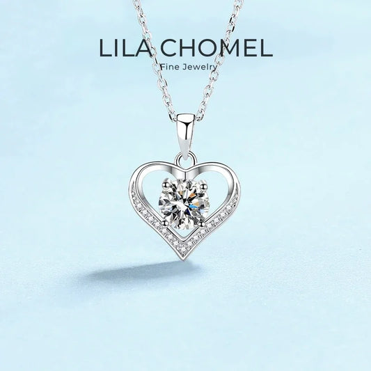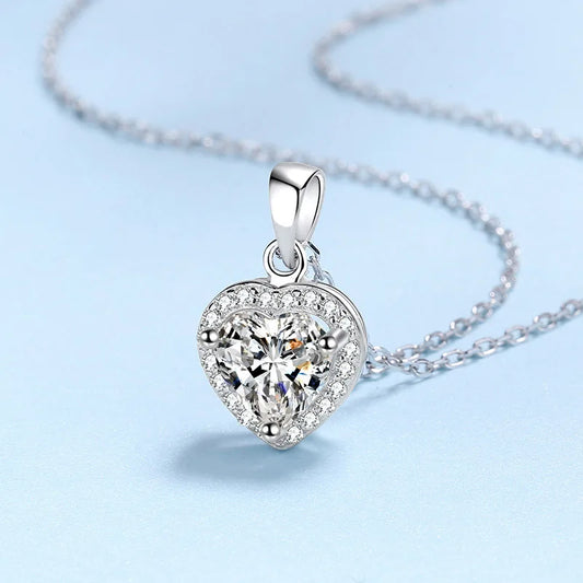 Engagement 18K White Gold Necklaces Women Wedding Fine Jewelry Girl Heart Pendant Moissanite Diamond 1ct Birthday Gift Daughter