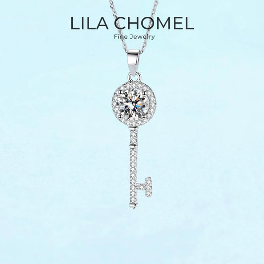 Fine Jewelry 18K White Gold Necklaces Women Valentine's Day Pendant Key 0.5/1ct Moissanite Diamond Girl Birthday Gift Daughter
