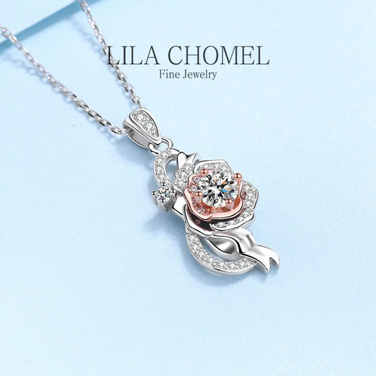 Quality Platinum PT950 girls rose flower necklace with 0.5ct Moissanite Pendant for Women D Color Sparkling Diamond fine Jewelry