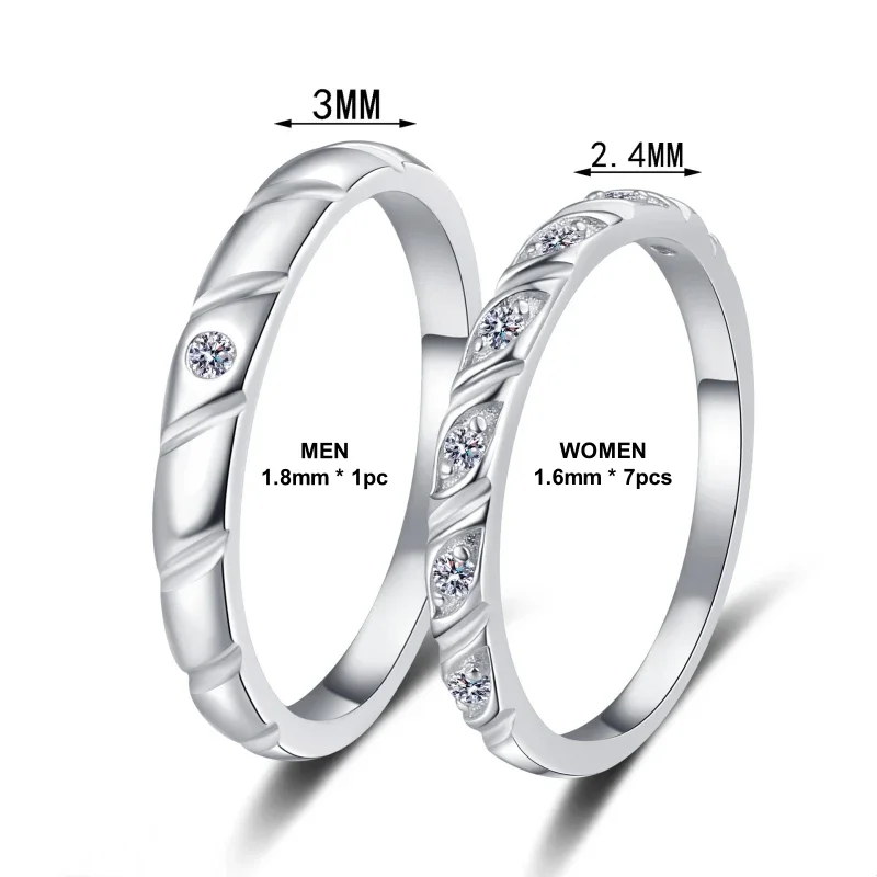 LOVERS Wedding Band 18K White Gold Women Men Engagement Rings 0.3CT Moissanite Diamond Girl Birthday Gift Daughter Adult's Day