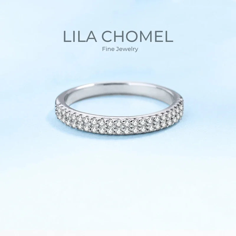 Made with PT950 platinum and an 18K white gold finish, this ring offers both luxury and durability. Its channel setting securely holds a 0.23-carat Moissanite diamond, allowing light to reflect beautifully while maintaining a sleek and elegant appearance. Weighing just 1.5g, the ring is lightweight, comfortable, and ideal for daily wear.