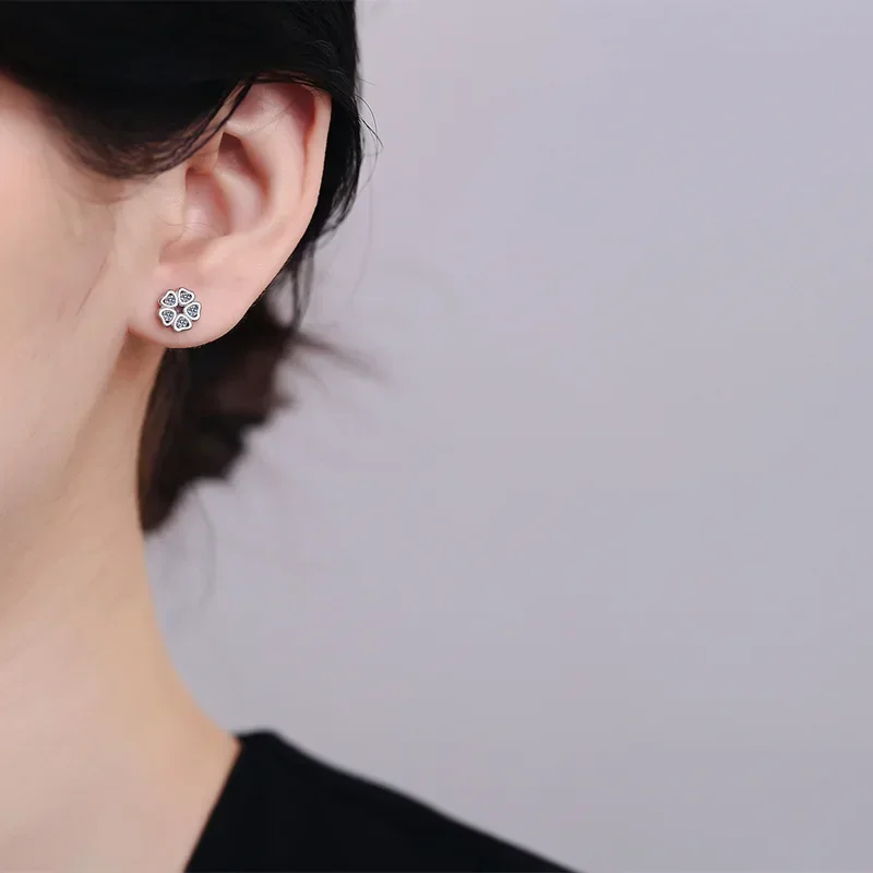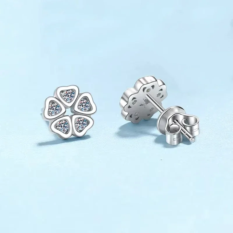 Daughter Adult's Day Platinum PT950 Women Wedding Flower Earplug Stud Earrings 0.25CT Moissanite Diamond Girl Birthday Gift INS