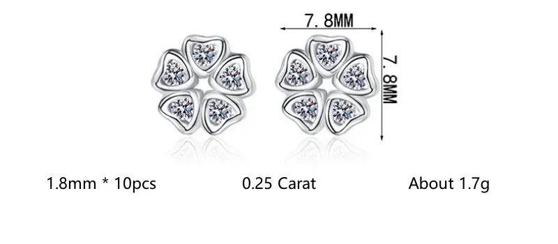 PT950 Platinum 0.25CT Moissanite Diamond Flower Stud Earrings – Women’s Fine Jewelry
