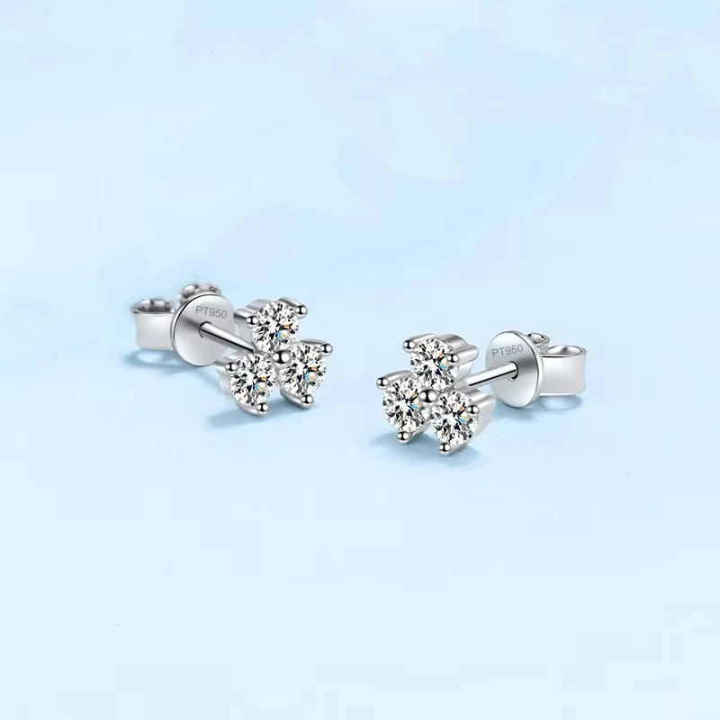 PT950 Platinum Moissanite Diamond Stud Earrings – Elegant Gift for Women