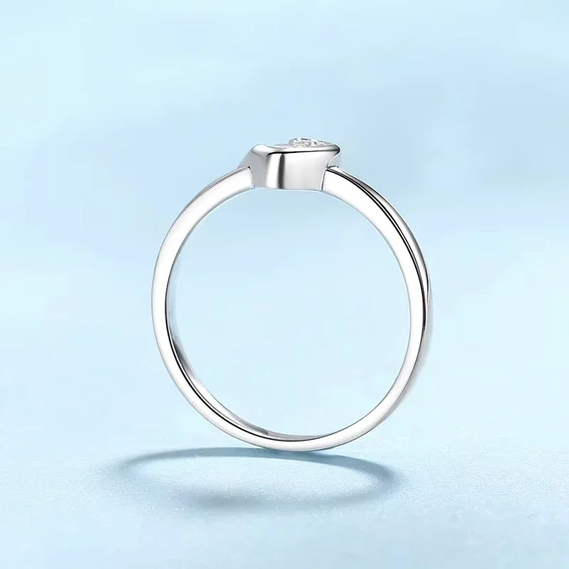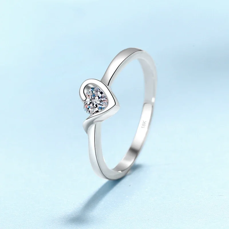 Daughter Adult's Day White Gold 18K Heart Rings Women Engagement Moissanite Diamond 0.3CT Girl Birthday Gift Lady Wedding Band