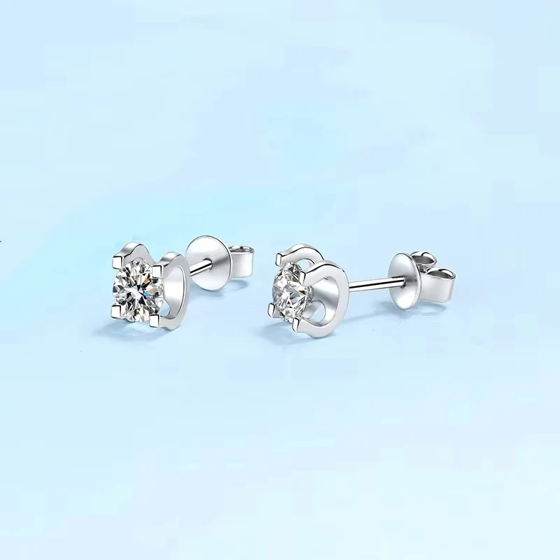 Timeless in style, these stud earrings feature a brilliant round-cut Moissanite diamond in a secure setting, designed to highlight maximum sparkle. Their minimalist yet luxurious look makes them versatile enough for everyday wear or formal occasions, adding effortless elegance to any outfit.