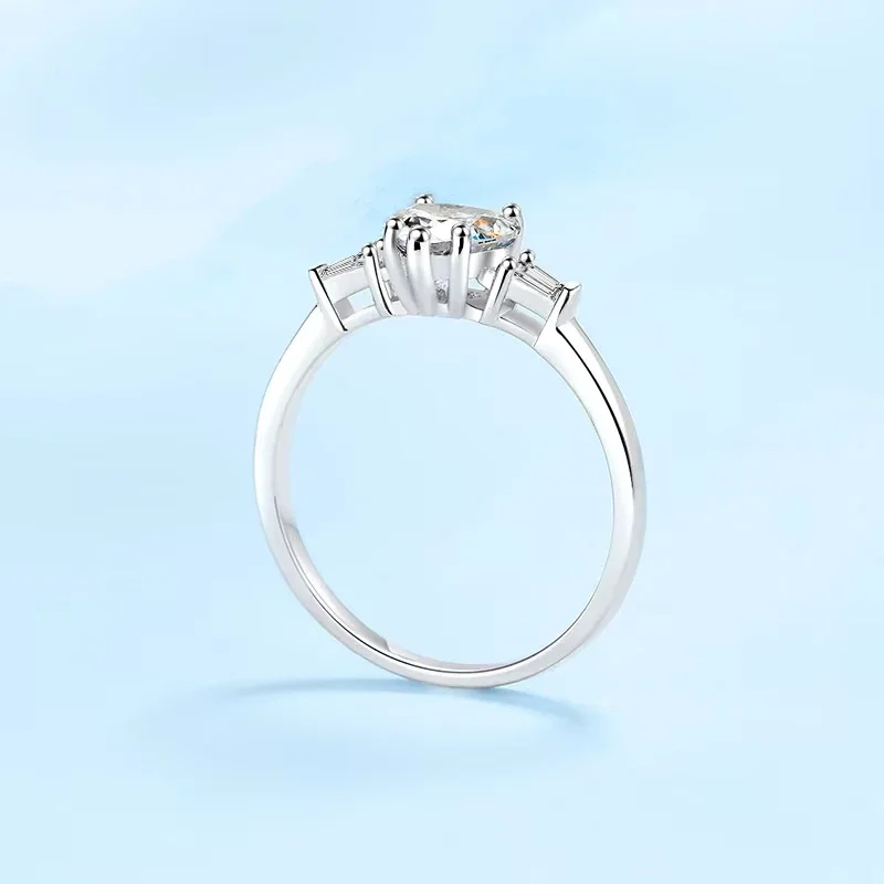 Made from premium PT950 platinum with an 18K white gold finish, this ring combines luxury, durability, and comfort. At just 1.9g, it is lightweight yet refined, designed for effortless wear every day. The heart-inspired prong setting beautifully secures the 1ct Moissanite diamond, symbolizing love and devotion while maximizing the stone’s brilliance.