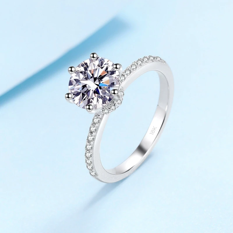 Designer Jewelry 18K White Gold 2 Carat VVS1 D Color Moissanite Diamond Six-pronged Setting Rings Wedding Accessories for Women