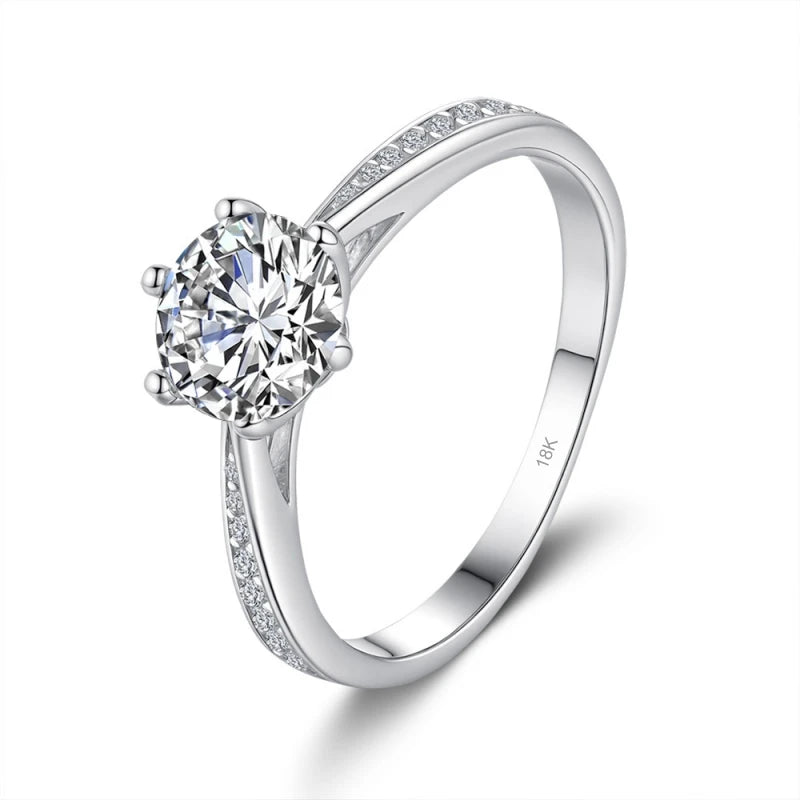 WOMEN Engagement 18K White Gold Sunflower Six Claw Wedding Band 1CT Moissanite Diamond Birthday Gift Girl Valentine's Day Rings