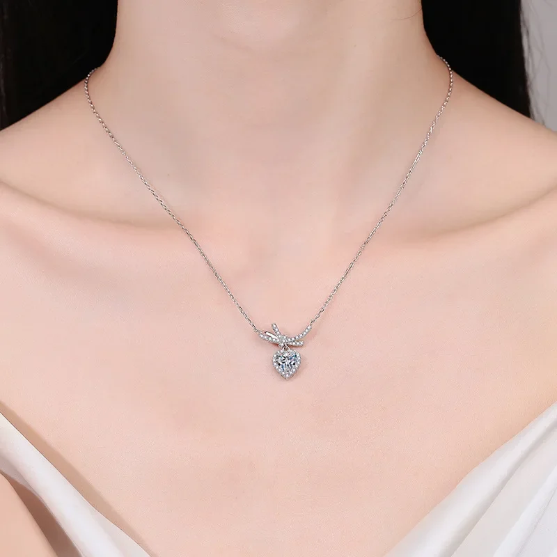 18K White Gold Moissanite Heart Pendant Necklace – A Romantic Gift for Women