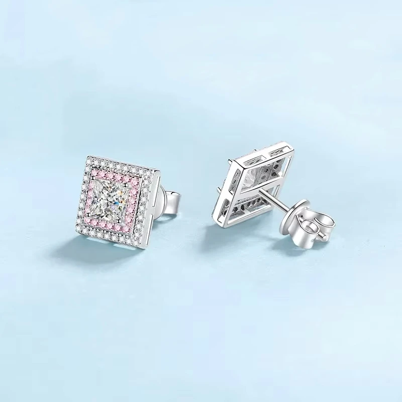 Featuring a square-cut 1.2CT Moissanite diamond, these stud earrings offer a bold yet refined look. The geometric design brings a trendy twist to the classic stud, making them the perfect choice for women who appreciate both fashion and elegance.