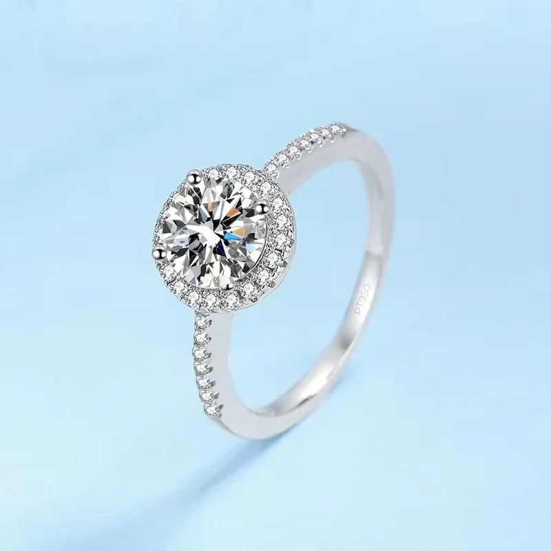 WOMEN Valentine's Day PT950 Platinum Wedding Band Moissanite Diamond VVS1 D Color 0.5/1/2CT Engagement Rings Girl Birthday Gift