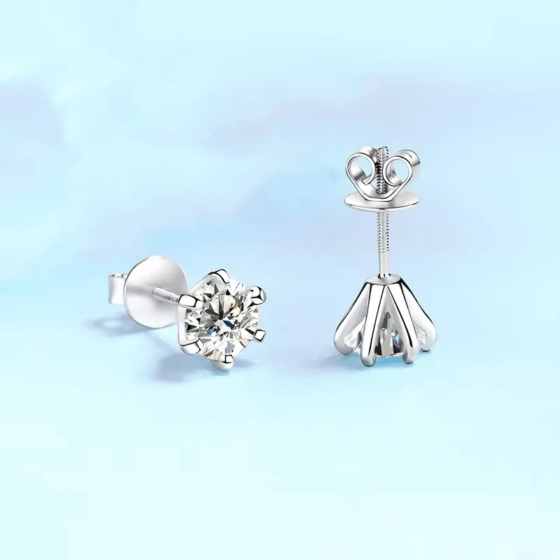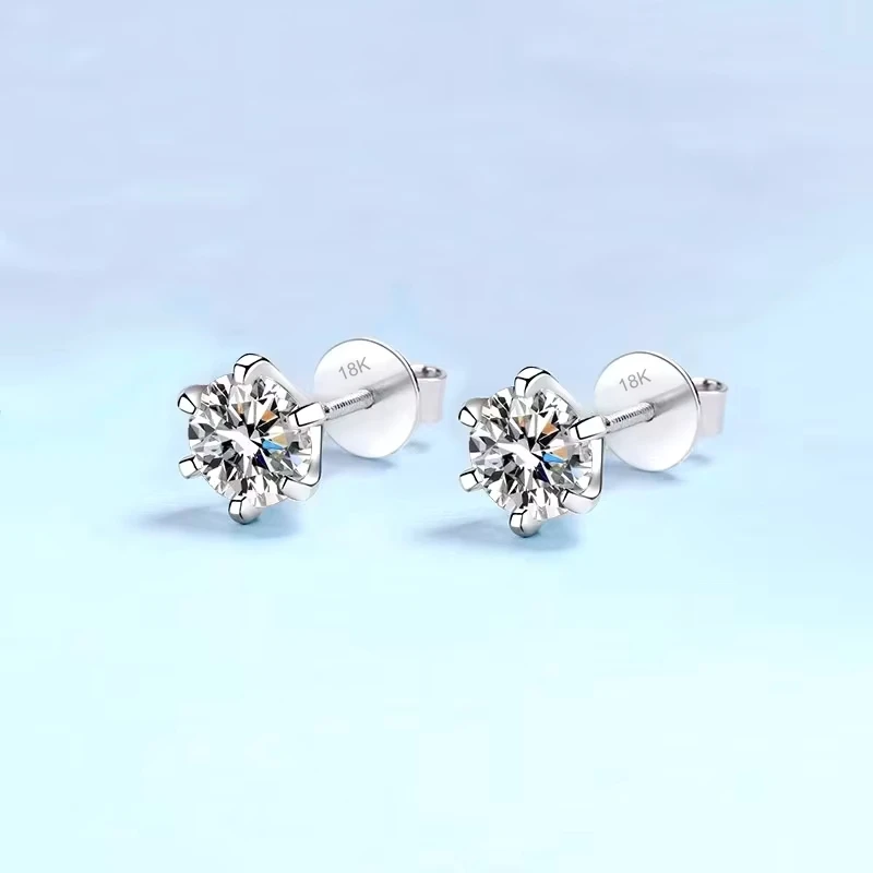 Each stud features a stunning Moissanite diamond, available in 0.5ct, 1ct, 1.5ct, and 2ct sizes. Certified by GRA/GIA, these stones guarantee authenticity and top-tier quality. With D color and VVS clarity, Moissanite rivals natural diamonds in brilliance and fire, while being eco-conscious, scratch-resistant, and long-lasting.