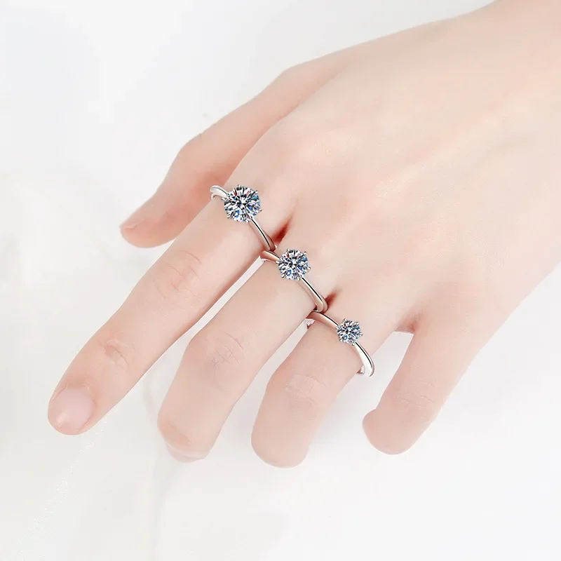 Girl Valentine's Day 18K White Gold Birthday Gift Rings 0.5/1/2/3CT Moissanite Diamond Women Wedding Band PT950 Platinum Jewelry