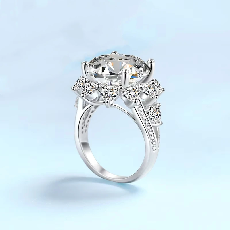 Sunflower 18K White Gold Moissanite Diamond Ring – 10 Carat Women’s Cocktail Band