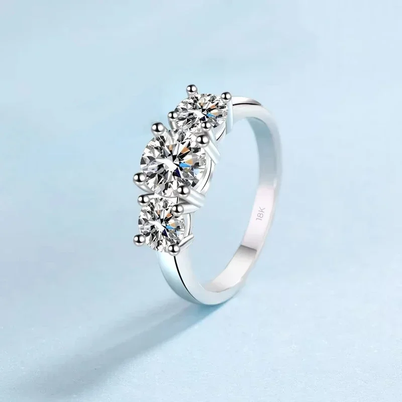 Girl Birthday Gift 18K White Gold Wedding Band Three Moissanite Diamonds 2CT Women PT950 Platinum Jewelry Valentine's Day Rings
