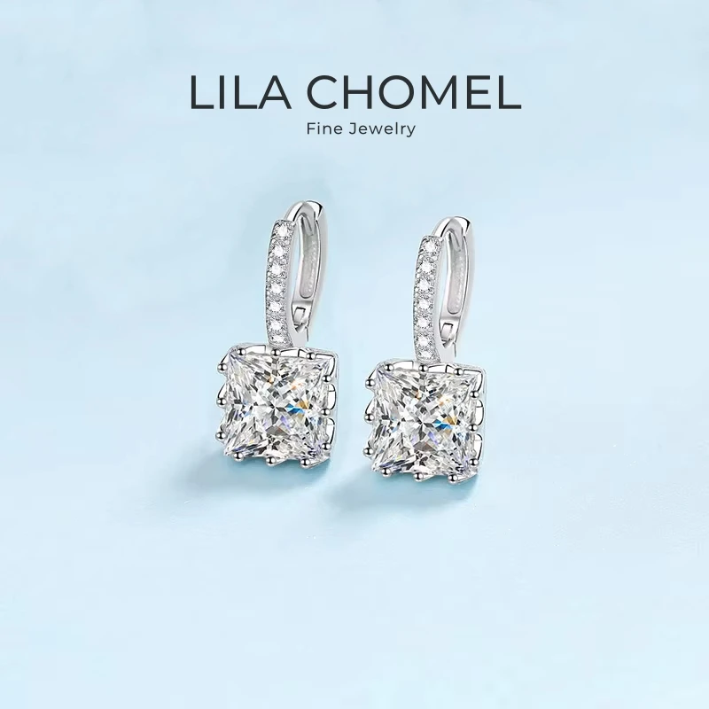 Each earring features a square-cut Moissanite diamond, available in 1CT, 2CT, or 4CT options, allowing you to choose between subtle elegance or bold sparkle. Certified by GRA/GIA, the Moissanite stones boast exceptional fire, VVS clarity, and D color brilliance, rivaling even the finest natural diamonds while being sustainable and long-lasting.