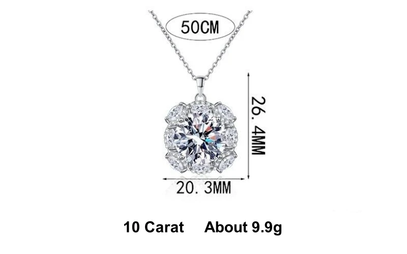 Girlfriend Birthday Gift PT950 Platinum Necklaces Women 10Carat D Color Moissanite Diamond Pendant Daughter Wedding Fine Jewelry