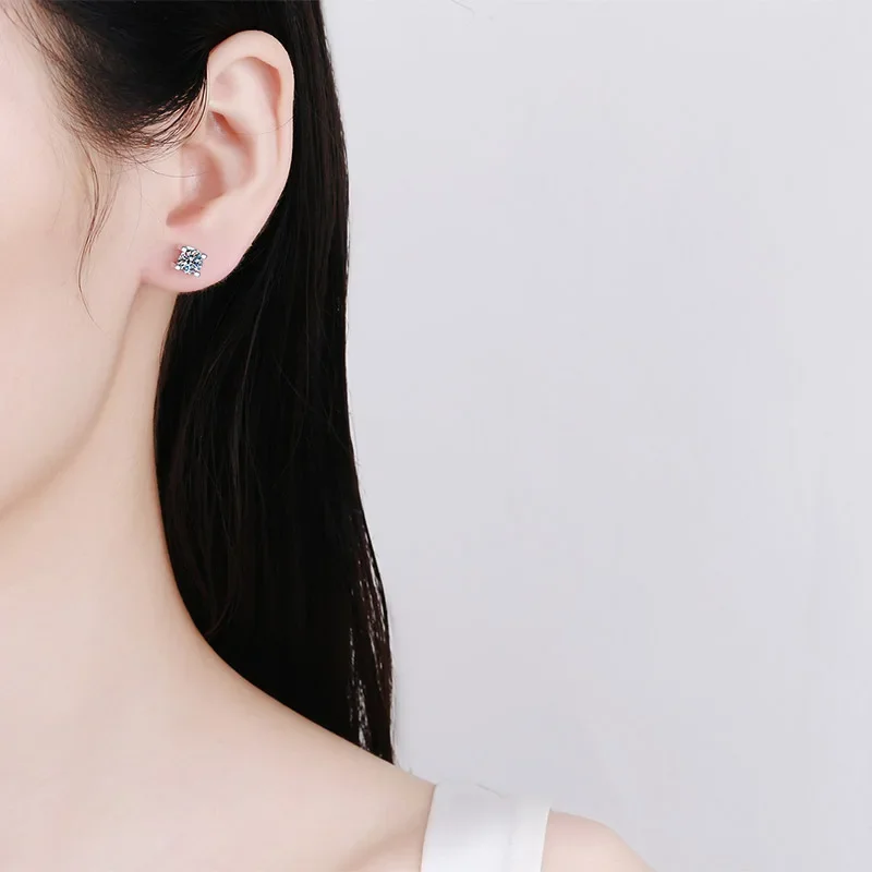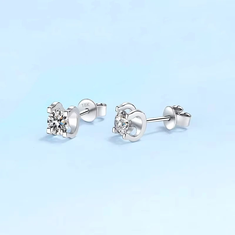 18K White Gold Moissanite Diamond Stud Earrings – Elegant Women’s Fine Jewelry