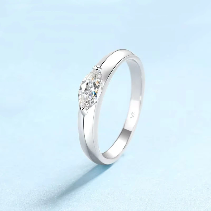 18K White Gold Marquise-Cut Moissanite Diamond Ring – Elegant Women’s Wedding Band
