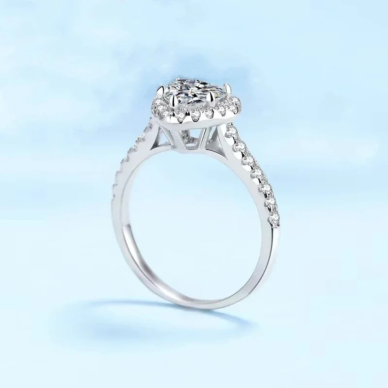 18K White Gold Moissanite Diamond Engagement Ring – PT950 Platinum