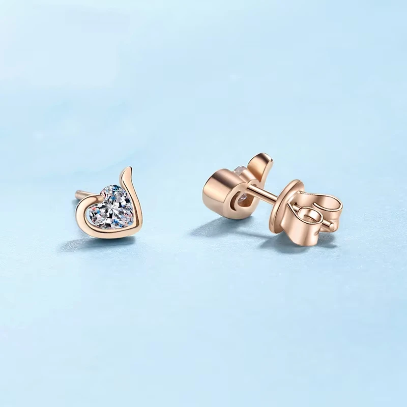 Heart Style 18K Rose Gold Stud Earrings for Women Moissanite Diamond 0.6ct Daughter Birthday Gift Fine Jewelry Girl Engagement