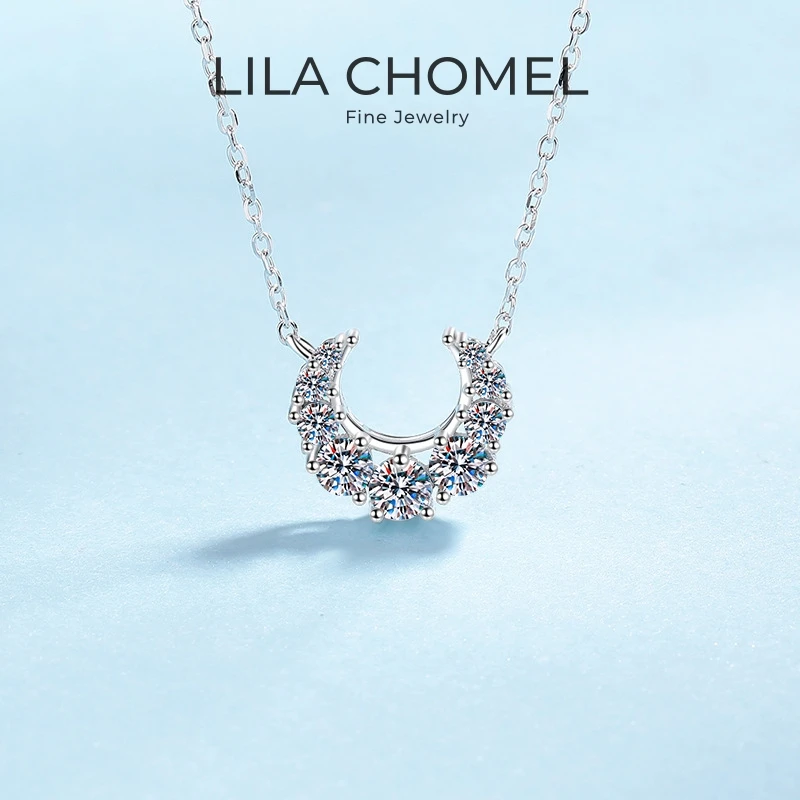 Delicate yet striking, this necklace combines refined craftsmanship with the brilliance of Moissanite. Celebrate her elegance with LILACHOMEL’s 18K White Gold & Platinum Moissanite Diamond Pendant Necklace.