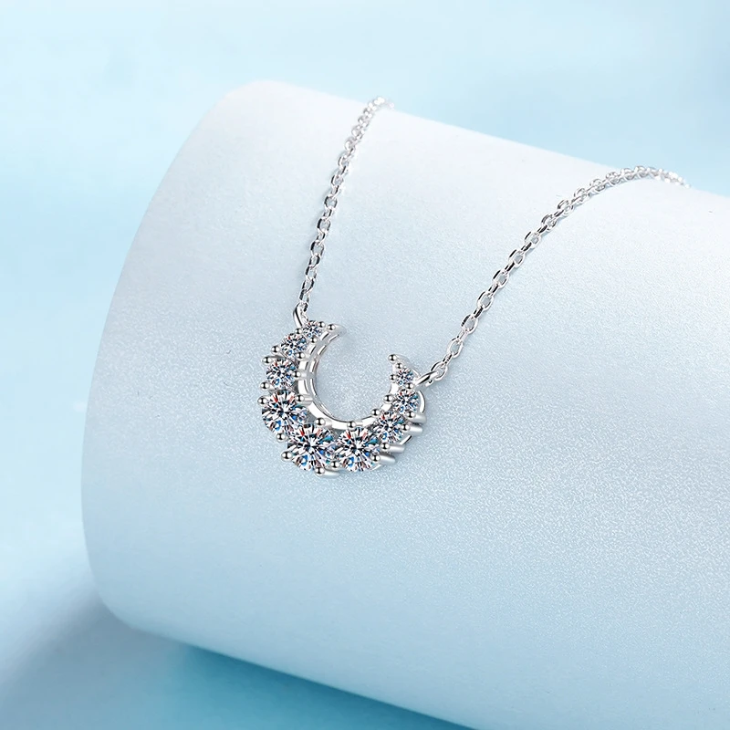 The necklace features a dazzling 0.66 carat Moissanite diamond in a refined pendant setting, offering brilliance that complements both casual and formal looks. Its trendy yet classic style ensures it becomes a treasured piece in her jewelry collection.