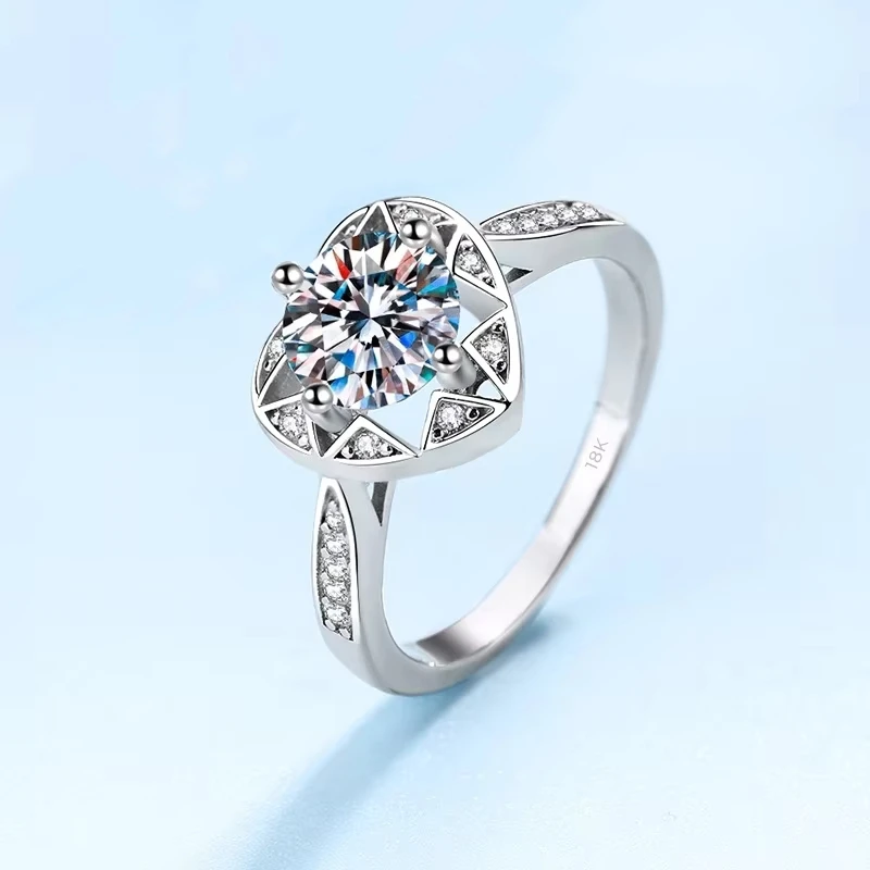 WOMEN Engagement 18K White Gold Sunflower Six Claw Wedding Band 1CT Moissanite Diamond Birthday Gift Girl Valentine's Day Rings