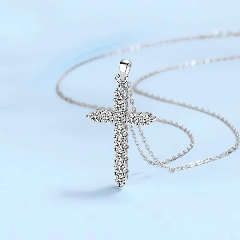 Luxury 18K White Gold Moissanite Diamond Cross Necklace – PT950 Platinum Pendant for Women