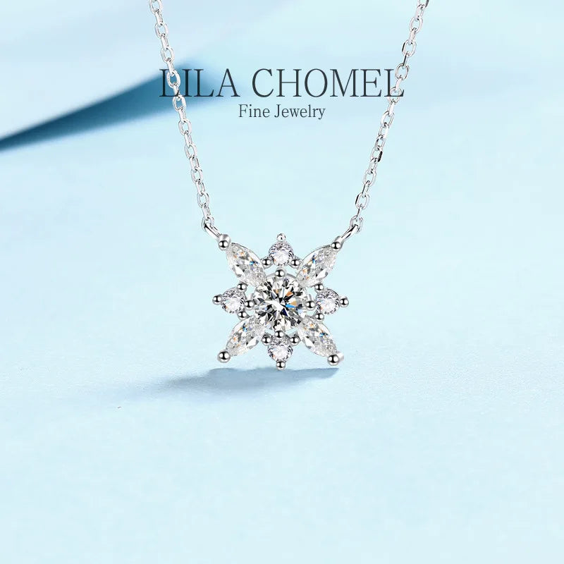 With its dazzling Moissanite brilliance and delicate snowflake design, this necklace is the perfect blend of luxury and elegance.