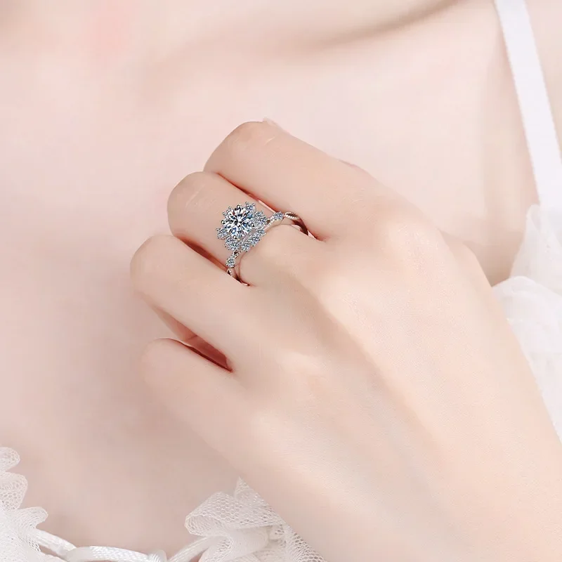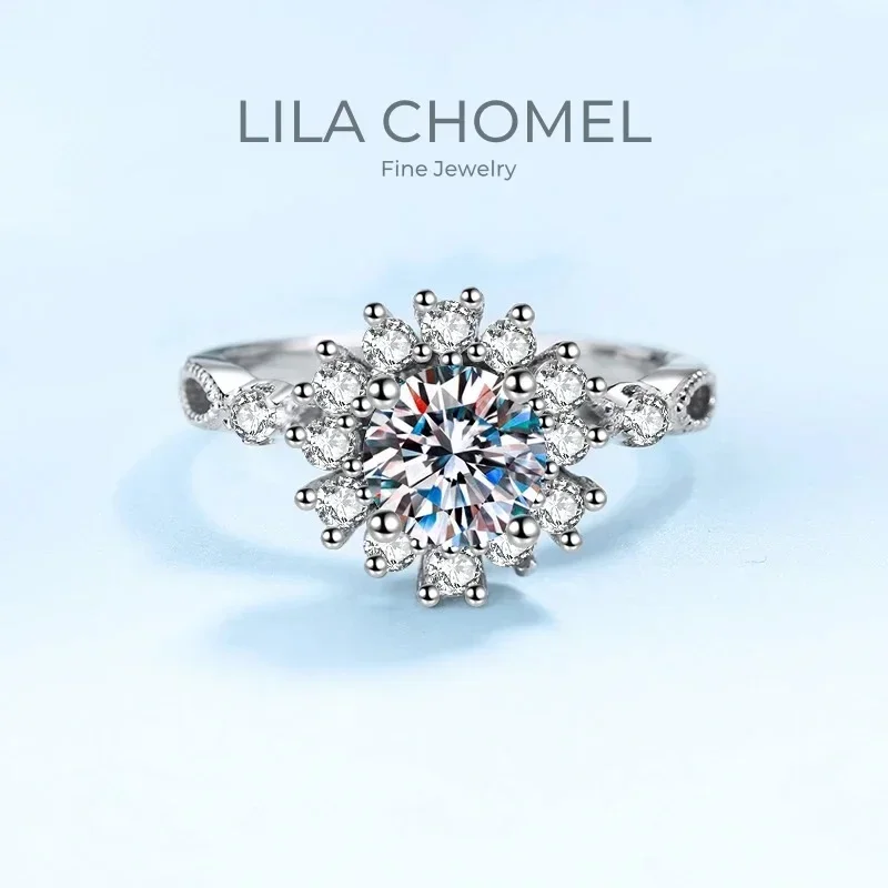 Surprise your girlfriend, fiancée, or wife with the LILACHOMEL Flower Moissanite Diamond Ring—a romantic piece of fine jewelry she’ll treasure forever.