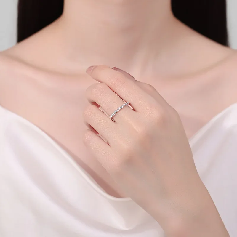 Valentine's Day Women 18K White Gold Birthday Gift Rings 0.12CT Moissanite Diamond Girlfriend Wedding Band Daughter Adult's Day